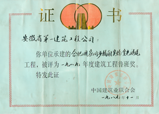該工程竣工后經(jīng)檢查驗收,評為優(yōu)良工程,經(jīng)安徽省建設廳批準評定為安徽省施工優(yōu)質(zhì)工程,并榮獲1989年度國家級優(yōu)質(zhì)工程“魯班獎”。 | ||||||||