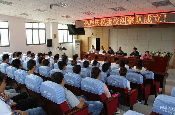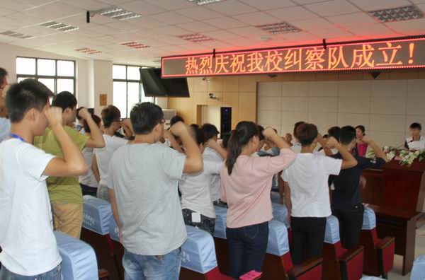9月23日下午三點(diǎn),校衛(wèi)隊成立大會在學(xué)校錄播室舉行。副校長呂良玉、學(xué)生處處長付書亭、建筑工程系黨支部書記李波、機(jī)電工程系黨支部書記朱曉玲、建筑經(jīng)濟(jì)管理系黨支部書記李繼萍、保衛(wèi)處鮑少華老師和所有校衛(wèi)隊成員參加了儀式。