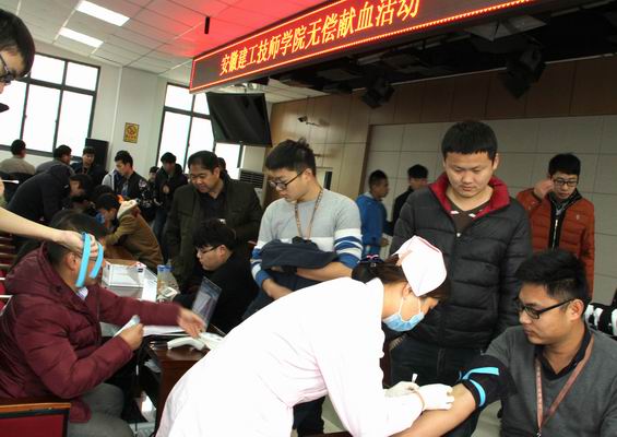 安徽建工技師學(xué)院于2010年開始,每年都舉行義務(wù)獻(xiàn)血活動,旨在關(guān)心他人健康,關(guān)愛他人生命,提高大家對公益事業(yè)關(guān)注的積極性。通過活動,展示了我院師生為公益事業(yè)奉獻(xiàn)的精神,增強(qiáng)了同學(xué)們的社會責(zé)任心和愛心。