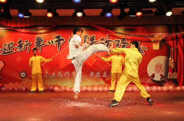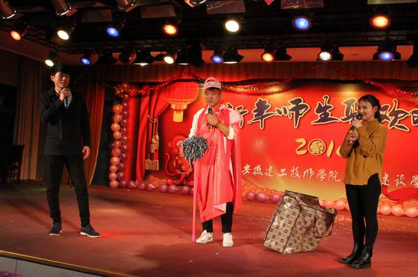 12月30日晚,安徽建工技師學(xué)院2016年迎新年師生聯(lián)歡晚會(huì)在學(xué)校禮堂隆重舉行。校長(zhǎng)張衛(wèi)東、黨委書記錢森林、安徽建工建筑材料有限公司副總經(jīng)理徐友修、工會(huì)主席韓振遠(yuǎn),安徽建工技師學(xué)院副校長(zhǎng)任建設(shè)、周元清、呂良玉,紀(jì)委書記、工會(huì)主席龔維加與各處室、系部負(fù)責(zé)同志和廣大師生員工、部分離退休老同志參加了聯(lián)歡。