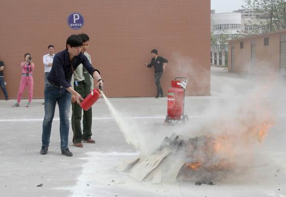 此次消防演練活動分為講座和實地滅火兩大部分。來自經(jīng)開區(qū)消防支隊的消防員胡強向大家介紹了生活中火災(zāi)可能會發(fā)生的隱患以及火災(zāi)的緊急處理辦法、滅火辦法、逃生、自救等注意事項和滅火器的使用方法。在認(rèn)真聽講及觀摩后,老師同學(xué)們親自體驗了現(xiàn)場滅火的過程。面對熊熊的火堆,大家表現(xiàn)非常沉著冷靜,熟練地按照滅火的步驟和方法,將燃起的大火迅速撲滅,做到了沉著冷靜面對突發(fā)情況并成功快速撲滅大火的消防標(biāo)準(zhǔn)。