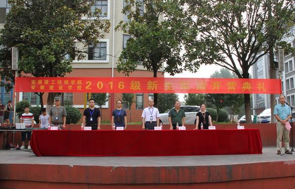 8月22日上午8點(diǎn)30分,安徽建工技師學(xué)院在學(xué)校操場(chǎng)召開2016級(jí)新生軍訓(xùn)開營典禮。副院長呂良玉、保衛(wèi)處處長胡頻、學(xué)生處副處長王海、機(jī)電工程系黨支部書記朱曉玲、建筑經(jīng)濟(jì)管理系黨支部書記李繼萍、建筑經(jīng)濟(jì)管理系主任陸飛虎、軍訓(xùn)教官李超隊(duì)長及所有新生班主任和全體新生參加了開營典禮。