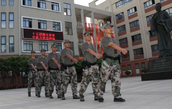 教官帶領(lǐng)校衛(wèi)隊在校園內(nèi)巡邏