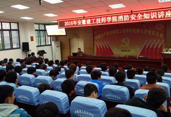 陳華教官在講座上以“火”入手,講解了“火災(zāi)”的定義,列舉了典型火災(zāi)案例;普及了消防基本知識(shí),著重闡述了火災(zāi)的分類,分析了火災(zāi)成因,講解了常見的消防設(shè)施、滅火器使用方法以及室內(nèi)消火栓維護(hù)管理要點(diǎn);對(duì)學(xué)生寢室里電線、手機(jī)、熱得快等電器因不當(dāng)使用引起的火災(zāi)真實(shí)事故案件進(jìn)行了講解,分析了最易發(fā)生火災(zāi)的情況,介紹了遭遇火災(zāi)如何發(fā)出求救信號(hào)、逃生和使用滅火器、濕毛巾、滅火彈、防毒面具,告知同學(xué)們要養(yǎng)成人走、燈熄、電停的良好習(xí)慣。