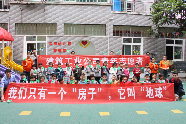 4月25日,建筑工業(yè)公司團支部組織青年志愿者來到肥東撮鎮(zhèn)貝樂幼兒園,開展了《我們只有一個“房子”,它叫“地球”》的環(huán)保主題教育活動。