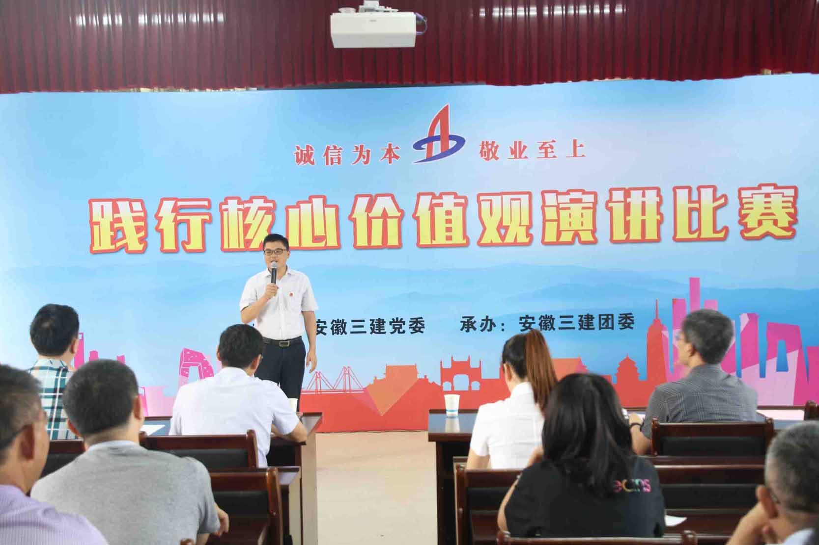 安徽三建團(tuán)委響應(yīng)黨委和上級(jí)團(tuán)委的號(hào)召,積極推進(jìn)“建工青年踐行核心價(jià)值觀”系列活動(dòng),舉辦“誠(chéng)信為本 敬業(yè)至上 踐行集團(tuán)核心價(jià)值觀”主題演講活動(dòng)。來(lái)自一線的20名青年員工參加l了演講,他們圍繞“誠(chéng)信為本 敬業(yè)至上”核心價(jià)值觀主題,結(jié)合各自工作和生活經(jīng)歷,用真摯的情感、樸實(shí)的語(yǔ)言、生動(dòng)的事例,聲情并茂、滿懷激情地講述了安徽三建人在實(shí)現(xiàn)“省內(nèi)領(lǐng)先、國(guó)內(nèi)一流”的宏偉愿景中,立足崗位,恪守誠(chéng)信、建功立業(yè)的深切體會(huì)和誠(chéng)實(shí)守信、愛(ài)崗敬業(yè)的感人故事;項(xiàng)目工地的“老黃?!?、克難攻堅(jiān)的“先鋒隊(duì)”、企業(yè)發(fā)展的“排頭兵”……在選手們聲情并茂的演講中,生動(dòng)再現(xiàn)了先進(jìn)模范人物堅(jiān)韌不拔、敬業(yè)奉獻(xiàn)的形象,用發(fā)生在身邊的感人事跡、工作亮點(diǎn)、工作感悟和經(jīng)驗(yàn)做法,感染了在座的每位觀眾,贏得了評(píng)委和觀眾的陣陣掌聲,讓每一位聽(tīng)眾的心靈受到一次了正能量的洗禮。比賽中,選手們激情飽滿,感情真摯,從不同層面、不同角度傾情講述,生動(dòng)刻畫(huà)模范的樸實(shí)形象,展現(xiàn)身邊員工于平凡中奉獻(xiàn)青春、于艱苦中助力改革、于崗位中磨練尖兵的樸實(shí)情懷。