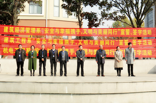 為保障學(xué)院學(xué)生身心健康,培養(yǎng)學(xué)生良好品行,有效預(yù)防青少年犯罪,對青少年的不良行為及時進(jìn)行預(yù)防和矯治,建筑經(jīng)濟(jì)管理系、建筑工程系、機(jī)電工程系與11月28日中午12:30分聯(lián)合組織學(xué)生開展了以“安全與幸福攜手,文明與美麗同行”為主題的宣誓、簽名活動。副院長任建設(shè)、呂良玉、德育工作部蘇曉紅主任、團(tuán)委書記陳卓、三系主任、書記及全體學(xué)生管理人員參加了此次活動。