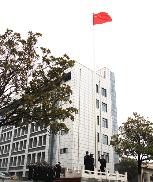 7點(diǎn)30分,在全體師生的注視下,我院國旗護(hù)衛(wèi)隊(duì)邁著整齊的步伐護(hù)送國旗來到國旗臺(tái)。在雄渾嘹亮的國歌聲中,升旗手振臂一揮,鮮艷的五星紅旗冉冉升起。全院師生面向國旗莊嚴(yán)肅立,行注目禮,心中漾起崇高的愛國之情。