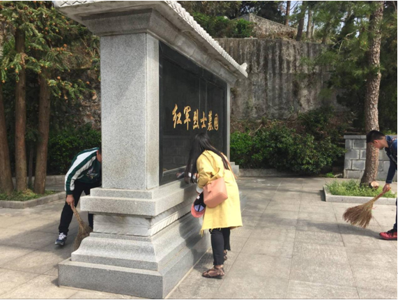 參觀結(jié)束后,青年團(tuán)員們抑制住激動(dòng)的心情,組織起墓園清潔活動(dòng)。此時(shí)正值雨季,樹(shù)葉經(jīng)風(fēng)雨吹打,稀稀落落覆滿了陵園,大家合理分工,有序的對(duì)紅軍烈士墓園進(jìn)行了清掃。大伙們清掃的動(dòng)作干練而又小心,生怕打擾了紅軍烈士的安眠,擦拭的地方干凈而又到位,生怕浮塵暗淡了革命烈士的光榮。