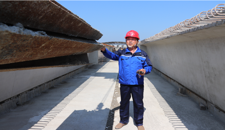 在施工一線,總能看到一個(gè)風(fēng)塵仆仆的身影。在幾百個(gè)日夜里,在近20公里的戰(zhàn)線上,他不分晝夜晴雨,奔波于施工現(xiàn)場,看望工人、督查進(jìn)度、查找問題、解決困難。