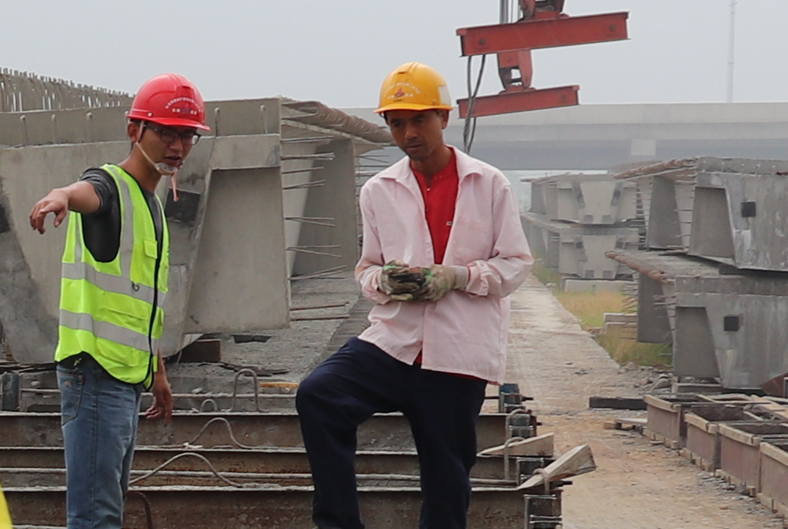 江濤,現(xiàn)任項(xiàng)目現(xiàn)場生產(chǎn)負(fù)責(zé)人兼2號預(yù)制場團(tuán)隊(duì)主管。他帶領(lǐng)著團(tuán)隊(duì)攻堅(jiān)克難,總結(jié)出“一團(tuán)隊(duì)、一條心、一件事、一起拼”的工作理念。在這個(gè)平凡卻光榮的崗位上,他用熱忱和努力,不斷為工程建設(shè)添磚加瓦、貢獻(xiàn)力量。