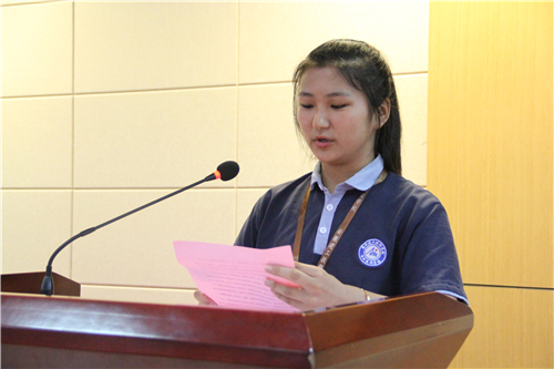 接著,來自建筑藝術系李欣蕊同學代表全體學生發(fā)言。她回顧了一學期來的學習生活體會,號召全體同學認真復習,在期末考試中取得好成績,文明離校,度過一個安全愉快有意義的暑假。