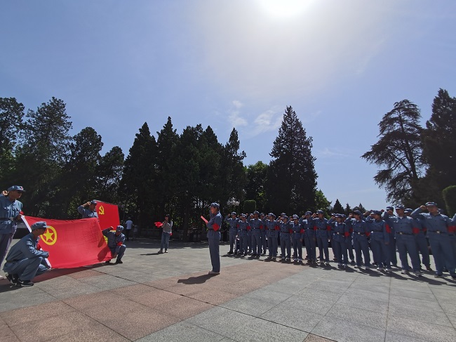 在統(tǒng)一換上紅軍服裝后,青年團員們首先來到金寨紅軍文化廣場。在革命烈士紀念塔下,面對鮮艷的中國共產主義青年團團旗,公司團委書記帶領到場青年團員重溫入團誓詞,牢記初心使命,緬懷革命先烈,傳承五四精神,并對榮獲公司2020年度“五四紅旗團支部”與“優(yōu)秀團員”的集體與個人進行了表彰。