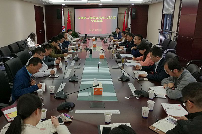 10月13日,在安建大廈2818會議室,應(yīng)機關(guān)第二黨支部邀請,集團總經(jīng)理、黨委副書記劉家靜同志為機關(guān)第二黨支部全體黨員授了題為“緊密結(jié)合企業(yè)中心工作,貫徹落實‘兩學(xué)一做’學(xué)習(xí)教育”的專題黨課。第二支部黨員、群眾共27人參加學(xué)習(xí),集團總會計師牛曉峰同志以普通黨員的身份參加會議并聽黨課。會議由第二支部書記朱金蓉同志主持。