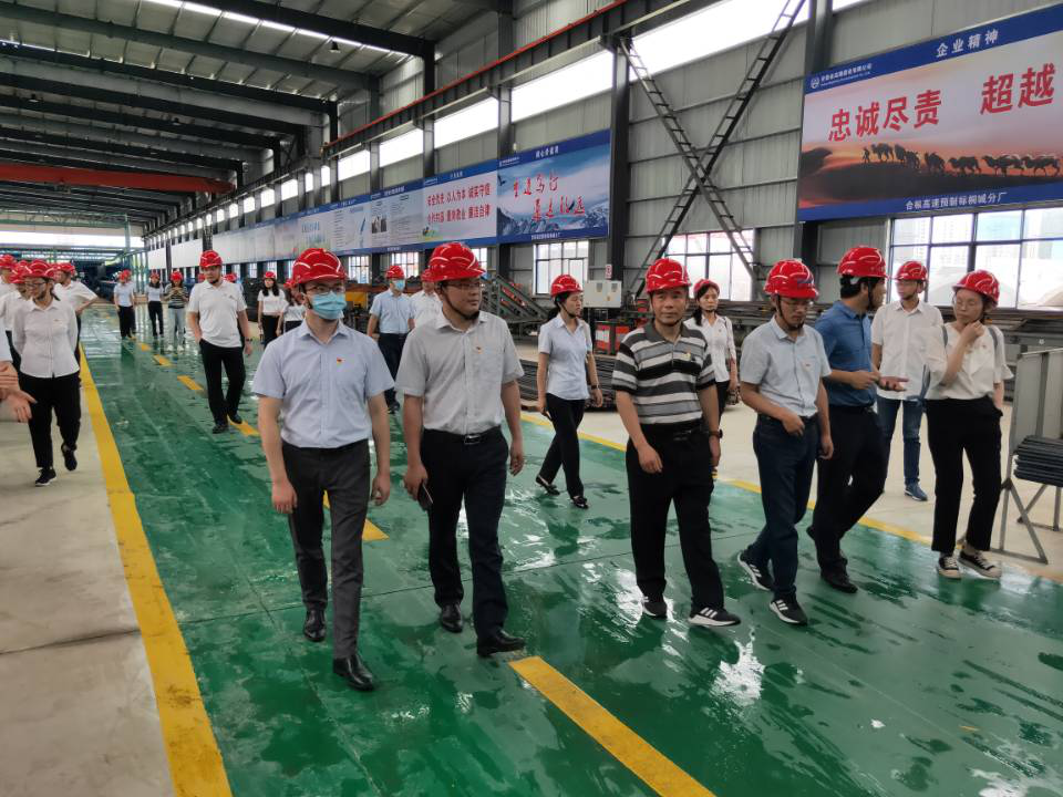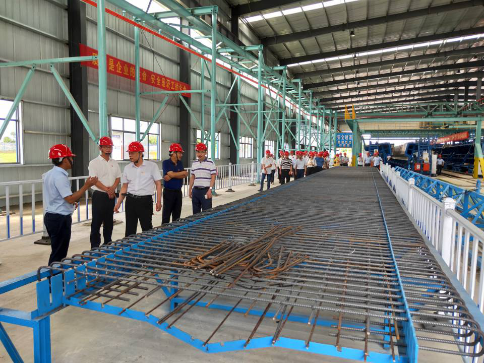 黨員們參觀安徽路港公司合樅高速預(yù)制標(biāo)桐城分廠生產(chǎn)車間。