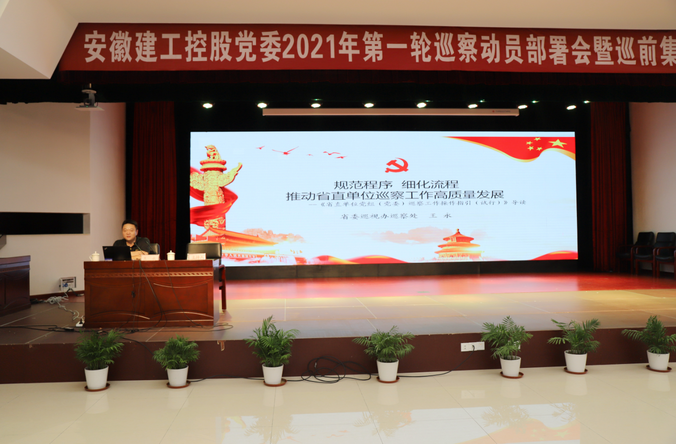 8月20日,建工控股黨委召開2021年第一輪巡察動員部署會暨巡前集中學習培訓班,深入學習貫徹中央及省委關于開展巡察工作的指導意見,認真落實2021年省直單位巡察工作推進會議精神,動員部署集團2021年第一輪巡察工作并開展巡察工作集中培訓,正式啟動集團新一輪巡察工作。建工控股黨委書記、董事長、黨委巡察工作領導小組組長趙時運出席會議并作動員講話。建工控股黨委委員、紀委書記、黨委巡察工作領導小組副組長王汪苗主持會議,建工控股、建工股份領導班子成員、集團黨委巡察工作領導小組成員出席會議。