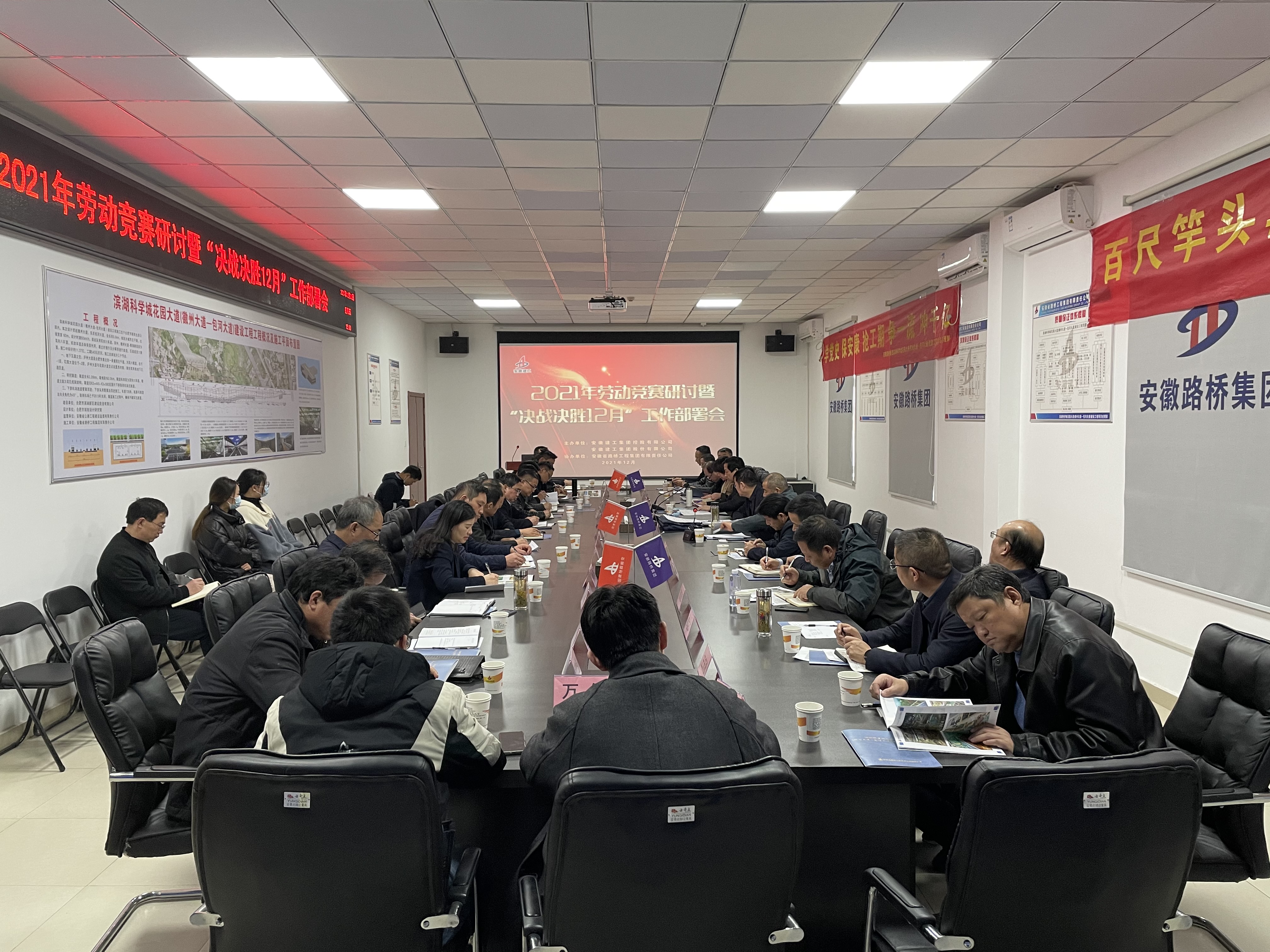 12月3日,安徽建工2021年度勞動競賽研討暨“決戰(zhàn)決勝12月”會議在安徽路橋集團花園大道項目部召開。此次會議旨在持續(xù)推動“學黨史、保安康、搶工期、爭一流、沖千億”勞動競賽向縱深開展,進一步掀起大干快上高潮,高質(zhì)量實現(xiàn)全年目標任務(wù)。股份公司黨委副書記、副總經(jīng)理孫學軍出席會議并講話。股份公司黨委副書記、控股公司及股份公司工會副主席徐文聯(lián)主持會議。