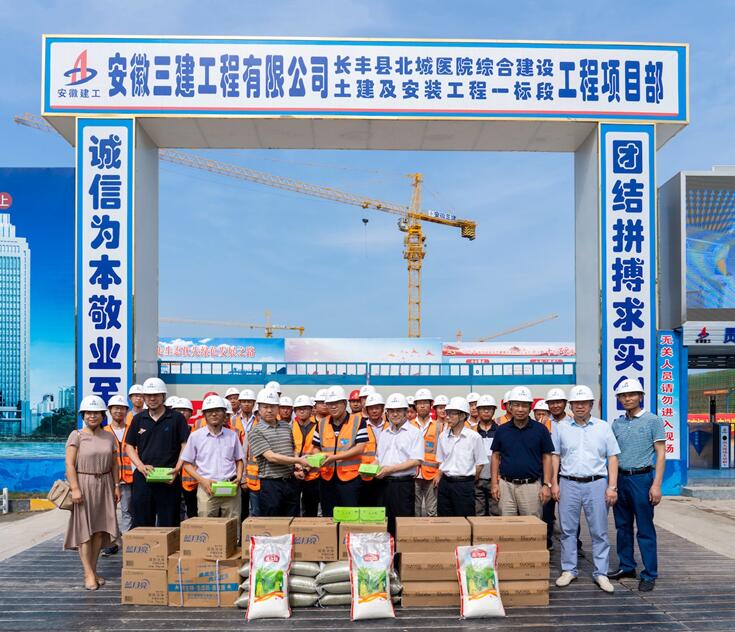 7月24日上午,建工控股總法律顧問申玉恩冒著高溫酷暑,來到安徽三建長(zhǎng)豐縣北城醫(yī)院項(xiàng)目慰問奮戰(zhàn)在施工一線的干部職工,為他們送去了防暑降溫用品,并深入一線,實(shí)地察看了施工現(xiàn)場(chǎng)??毓煞墒聞?wù)部部長(zhǎng)王勇、信訪保衛(wèi)部部長(zhǎng)駱新農(nóng),三建公司黨委書記、董事長(zhǎng)左登宏、紀(jì)委書記、工會(huì)主席李家保等陪同慰問。