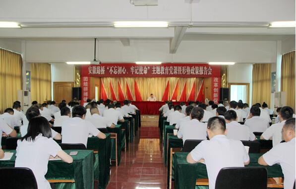 為進(jìn)一步推深做實(shí)“不忘初心、牢記使命”主題教育,按照公司主題教育方案部署,8月2日下午,股份公司副總經(jīng)理、安徽路橋公司黨委書記、董事長孫學(xué)軍以“守初心 擔(dān)使命 找差距 抓落實(shí)——用習(xí)近平新時(shí)代中國特色社會(huì)主義思想指導(dǎo)打造品質(zhì)路橋卓越路橋”為主題,作了一場主題教育黨課暨形勢政策報(bào)告會(huì)。集團(tuán)主題教育第四指導(dǎo)組副組長王永來到會(huì)指導(dǎo)。公司領(lǐng)導(dǎo),中層干部,在肥項(xiàng)目經(jīng)理、黨支部負(fù)責(zé)人,機(jī)關(guān)全體黨員100余人參加了報(bào)告會(huì)。