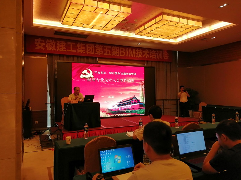 9月18日至9月24日,安徽建工集團股份公司在肥東安徽水利和順大酒店舉辦了第五期BIM技術培訓。本次培訓為封閉式高級培訓,由總工辦與人力資源部合辦。參培的55名技術骨干,主要由所屬單位從參加過集團公司第三期、第四期BIM技術培訓且考核成績較好的人員推薦組成。股份公司總工程師楊斌參加開班儀式并結合“不忘初心、牢記使命”主題教育為學員上了《提高專業(yè)技術人員黨性修養(yǎng)》黨課。