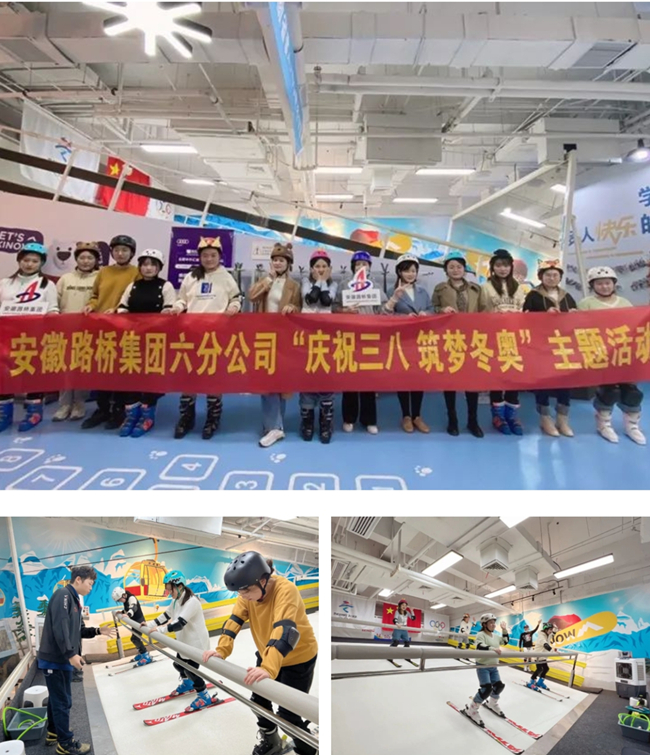 六分公司組織全體女職工開展了以“慶祝三八 筑夢冬奧”為主題的滑雪活動。大家在助教的幫助下,穿戴好滑雪裝備,走上了滑雪機器,一起跟隨教練學(xué)習(xí)了犁式剎車及犁式直滑降,一遍又一遍的練習(xí),切身體會到“臺上三分鐘,臺下十年功”,更能領(lǐng)會冬奧中國運動員們?yōu)榱藝覙s譽背后付出的艱辛和不易。