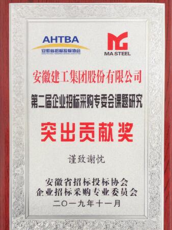 近日,從安徽省招標(biāo)投標(biāo)協(xié)會舉辦的“2019年安徽省國有企業(yè)招標(biāo)采購發(fā)展論壇”上傳來喜訊,集團(tuán)招標(biāo)中心報送的研究成果《集采平臺信息化建設(shè)、應(yīng)用與管理》榮獲三等獎,安徽建工集團(tuán)股份有限公司被授予“特別貢獻(xiàn)獎”。
