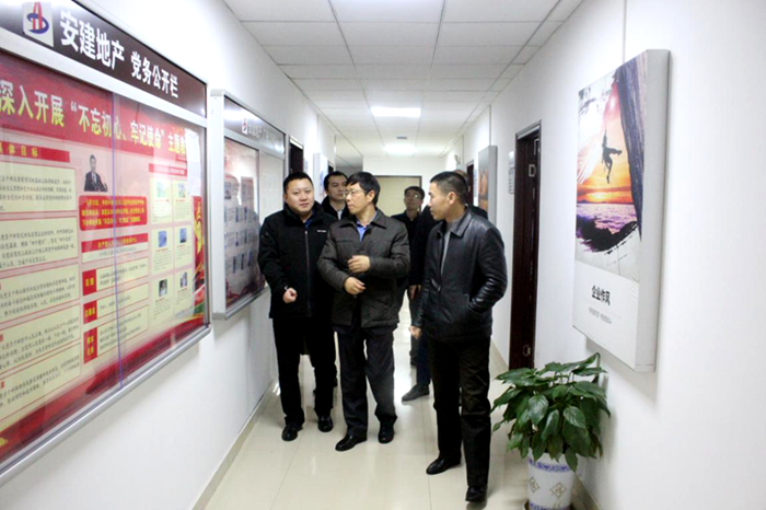 王厚良一行首先前往安建地產(chǎn)·楓林源筑施工現(xiàn)場(chǎng)實(shí)地察看工程進(jìn)度,并在營(yíng)銷中心對(duì)項(xiàng)目銷售情況進(jìn)行了了解;之后,參觀了阜陽公司職工之家、職工書屋、黨員活動(dòng)室等。