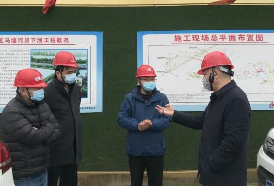 會(huì)后,楊廣亮一行又冒雨來到一公司裕安區(qū)馬堰河渠下涵工程項(xiàng)目施工現(xiàn)場(chǎng)。該項(xiàng)目已于2月21日全面復(fù)工。楊廣亮對(duì)防疫物資準(zhǔn)備、“一責(zé)兩案”的落實(shí)情況進(jìn)行了細(xì)致的檢查,并要求在做好疫情防控工作的同時(shí),確保安全生產(chǎn),提高效率,加班加點(diǎn),實(shí)現(xiàn)度汛目標(biāo)。