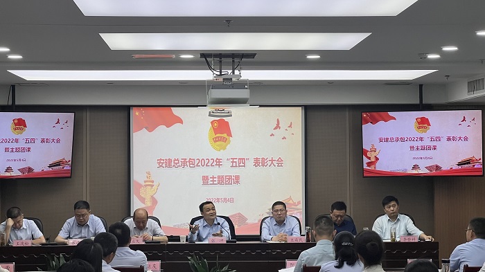 為隆重慶祝中國共產(chǎn)主義青年團(tuán)成立100周年,在五一假期的5月4日青年節(jié)當(dāng)天,安建總承包召開2022年“五四”表彰大會(huì)。黨委書記、總經(jīng)理張沖作形勢(shì)任務(wù)教育主題團(tuán)課,在肥領(lǐng)導(dǎo)王成民、徐友修、谷建偉、李登祥、王慶松為受表彰集體和個(gè)人頒獎(jiǎng)并寄語青年,紀(jì)委書記、工會(huì)主席高立久主持。