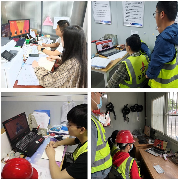 5月10日上午10點,慶祝中國共產(chǎn)主義青年團成立100周年大會在人民大會堂隆重舉行,習近平總書記發(fā)表重要講話。安建總承包團委第一時間作出工作部署,組織所屬16個團支部200余名團員青年分別在屬地、各項目部收看大會實況直播。