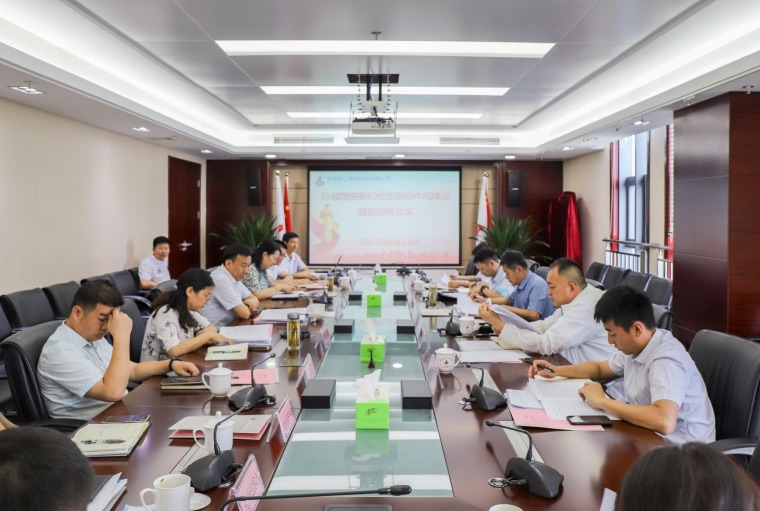 6月13日,省紀委監(jiān)委駐省國資委紀檢監(jiān)察組督查組一行五人來集團開展2022年上半年作風建設情況監(jiān)督檢查??毓?/span>黨委委員、紀委書記、監(jiān)察專員王汪苗主持召開督查匯報會,控股紀委副書記陳小群作專題匯報。