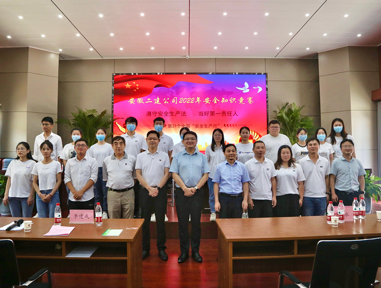 今年六月是第21個(gè)“全國(guó)安全生產(chǎn)月”,為了貫徹落實(shí)活動(dòng)主題“遵守安全生產(chǎn)法 當(dāng)好第一責(zé)任人”,用以賽促學(xué)、以活動(dòng)促宣傳的方式提高廣大職工的安全意識(shí),6月17日上午,公司工會(huì)牽頭,與安全管理部聯(lián)合舉辦了安徽二建2022年安全知識(shí)競(jìng)賽活動(dòng)。公司黨委副書(shū)記、總經(jīng)理李建成,黨委副書(shū)記、工會(huì)主席王軍出席活動(dòng),黨委委員、副總經(jīng)理葉和永,安全總監(jiān)、安全管理部主任曹建,工會(huì)副主席、女工委主任王俊出席并擔(dān)任評(píng)委。