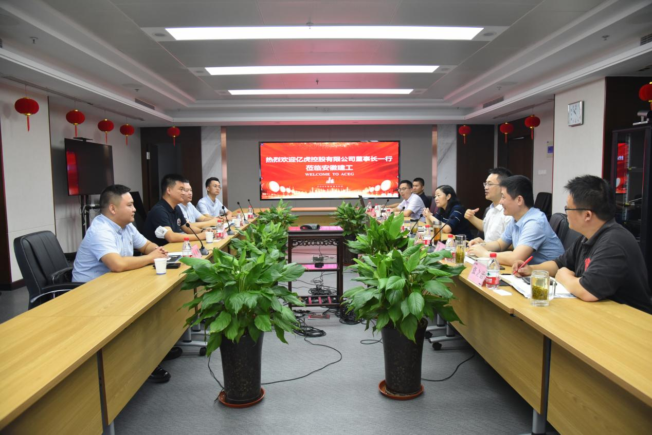 8月13日上午,建工股份副總經(jīng)理、海外事業(yè)部黨總支書記、總經(jīng)理邢應(yīng)梅在安建國際大廈12樓會見億虎控股有限公司董事長吳亞俊一行,雙方就瀝青國際貿(mào)易業(yè)務(wù)開展專題座談交流,安建建材黨委委員、副總經(jīng)理李鑫參加座談。