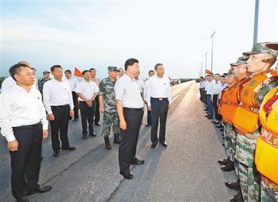 大堤上,習(xí)近平親切看望慰問了在防汛抗洪救災(zāi)斗爭中犧牲同志的家屬、防汛抗洪一線人員、先進典型代表和參加抗洪搶險的部隊官兵,并向全國奮戰(zhàn)在防汛抗洪救災(zāi)一線的同志們表示誠摯的問候。他強調(diào),今年入汛以來,南北方江河湖泊接連出現(xiàn)超警戒水位險情。廣大干部群眾和人民解放軍、武警官兵堅決響應(yīng)黨和政府號召,發(fā)揚不怕累苦、不怕疲勞、不怕犧牲的精神斗志,堅守在防汛抗洪救災(zāi)第一線,涌現(xiàn)了許多先進典型和感人事跡,展現(xiàn)了中國人民眾志成城、頑強拼搏、敢于勝利的英雄氣概,書寫了洪水無情人有情的人間大愛。黨和人民感謝你們!