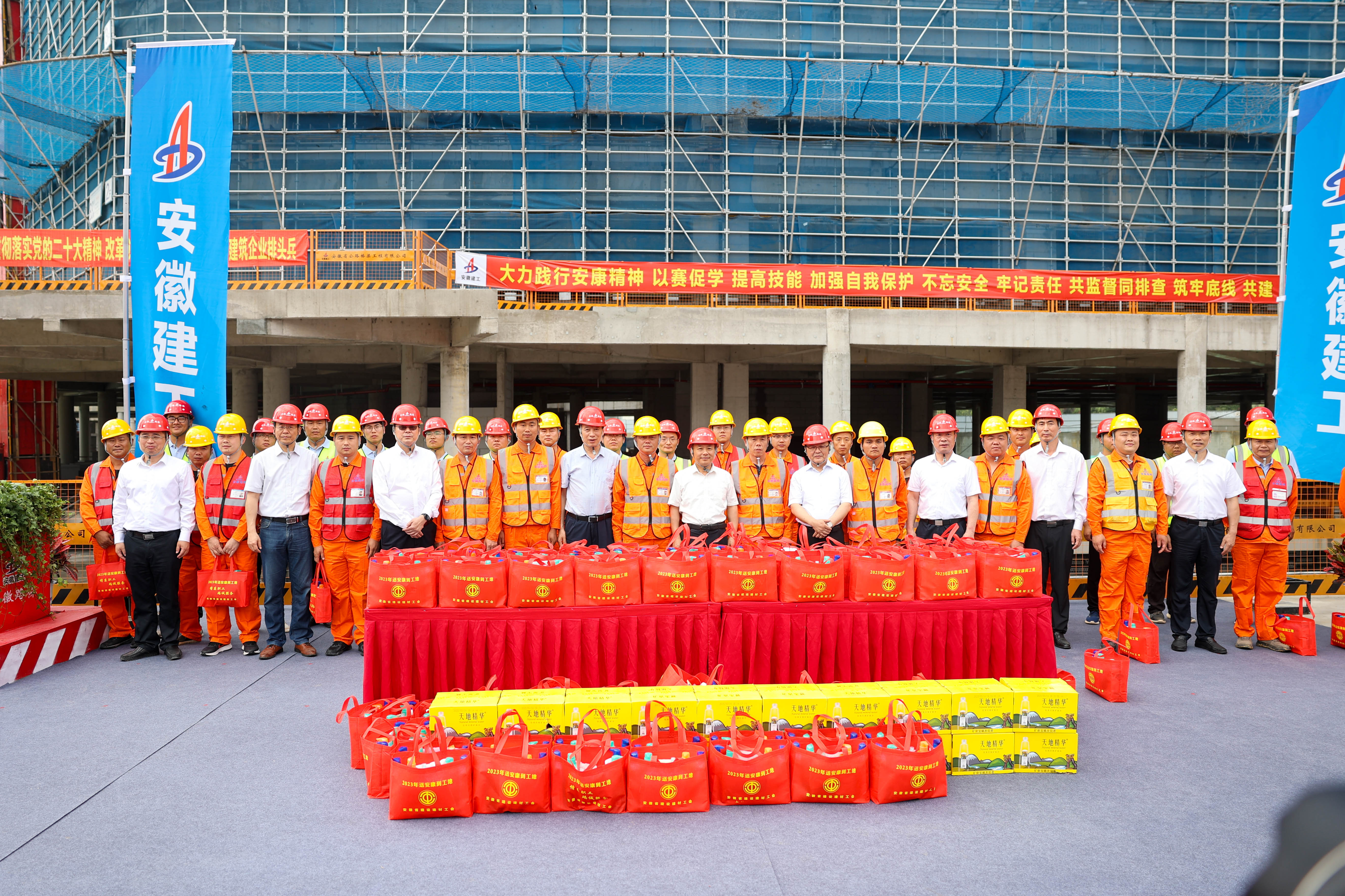啟動儀式上,參賽職工代表關(guān)凱作莊嚴宣誓,主席臺領(lǐng)導(dǎo)分別向來自全省16個地市、2個直管縣的參賽單位代表授旗。全體參會人員觀摩了項目現(xiàn)場并看望慰問建設(shè)工地一線職工。