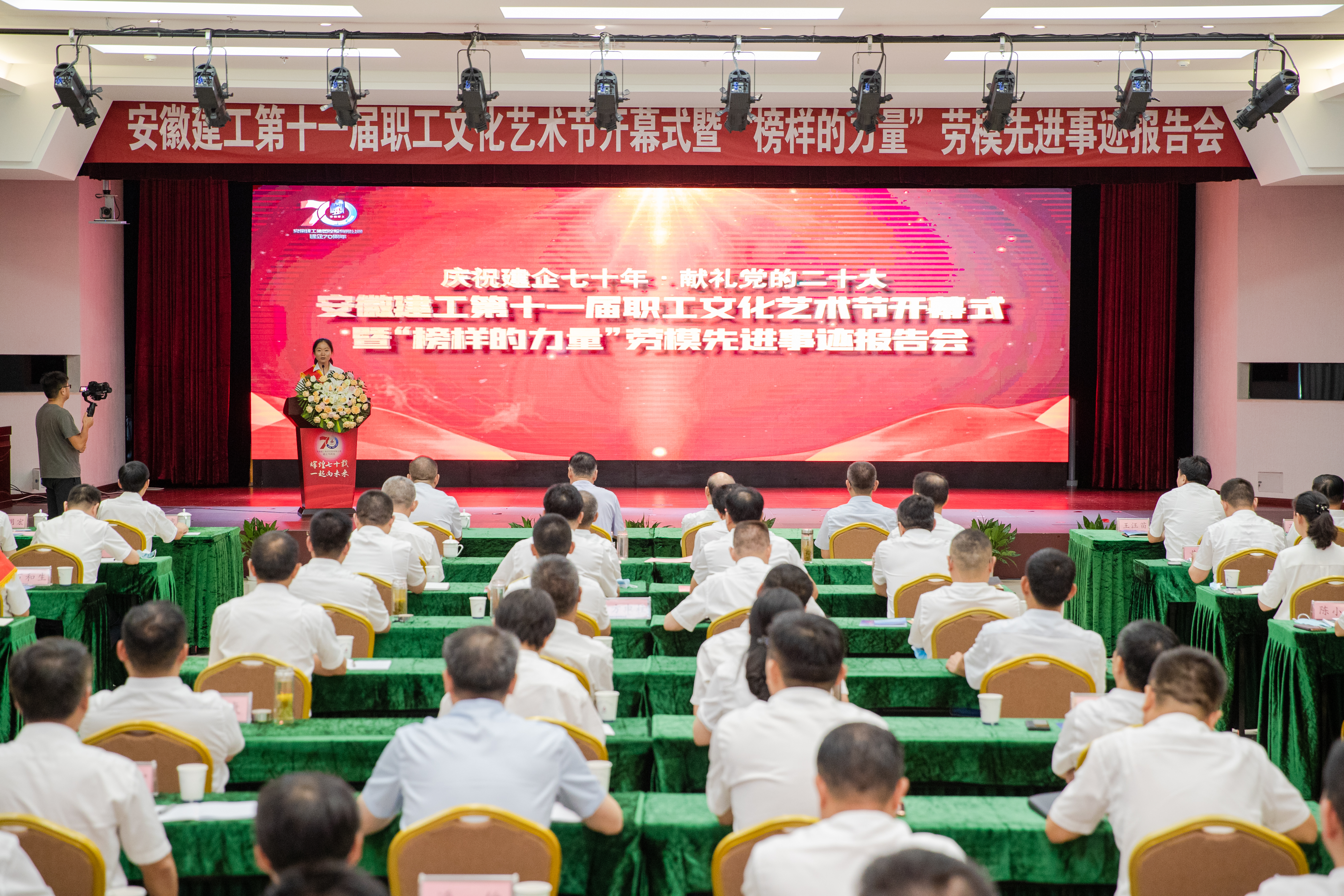 8月12日上午,安徽建工第十一屆職工文化藝術(shù)節(jié)開幕式暨“榜樣的力量”勞模先進事跡報告會在安建大廈舉行。省住建廳建設(shè)建材工會(廳文明辦)主任、一級調(diào)研員程德旺應(yīng)邀出席并講話,建工控股黨委書記、董事長趙時運宣布文化藝術(shù)節(jié)開幕,并與控股公司領(lǐng)導(dǎo)班子成員共同啟動開幕畫軸。