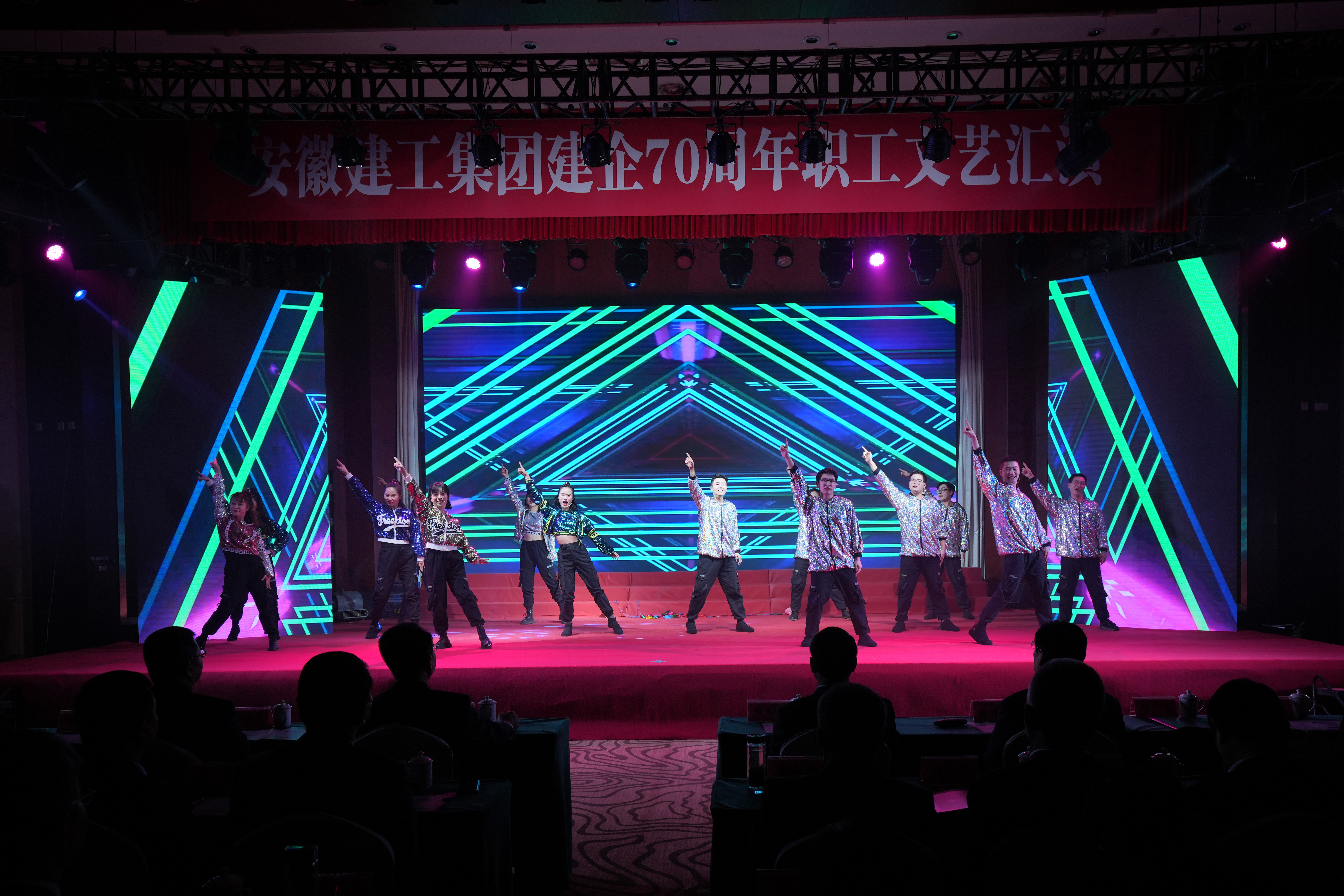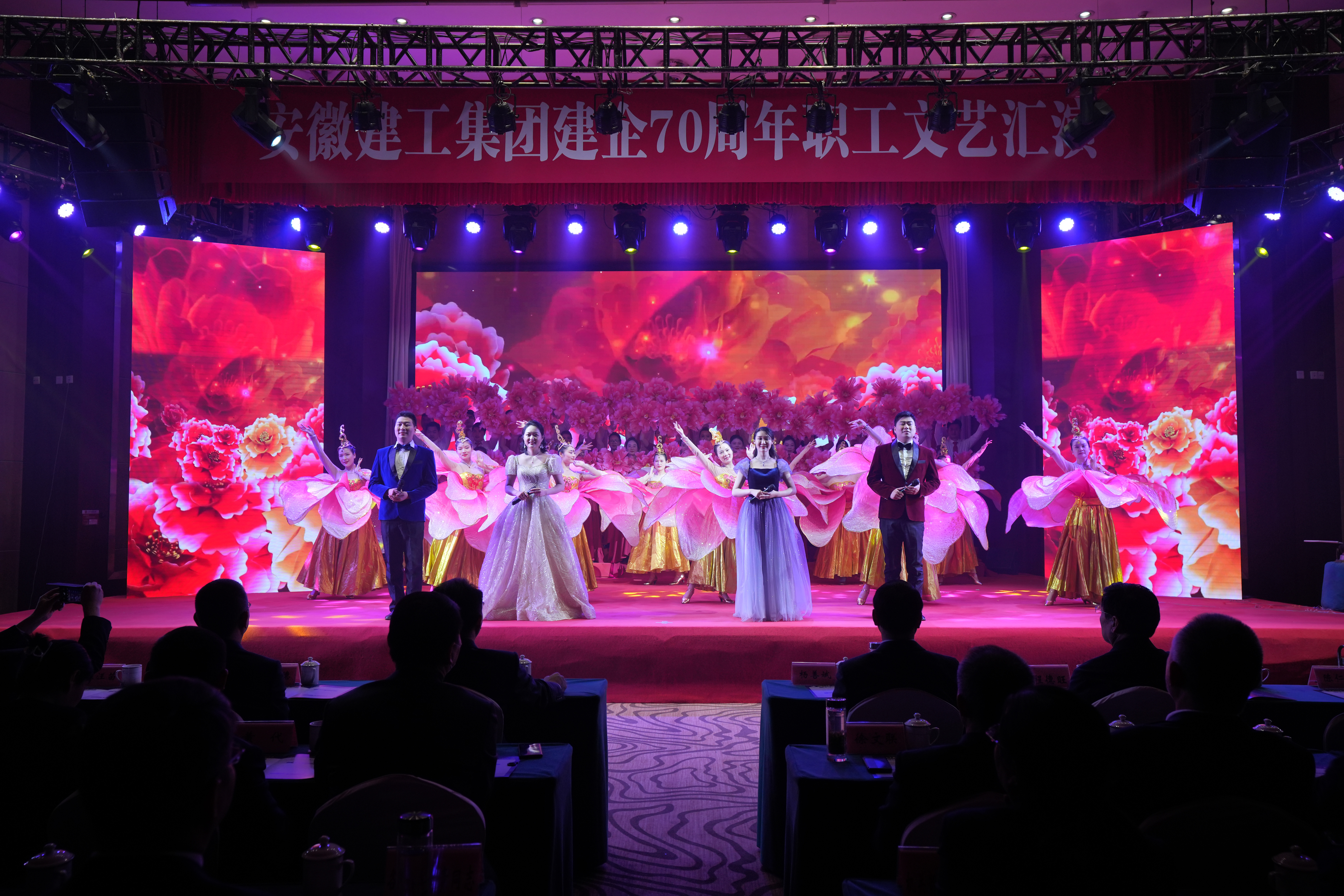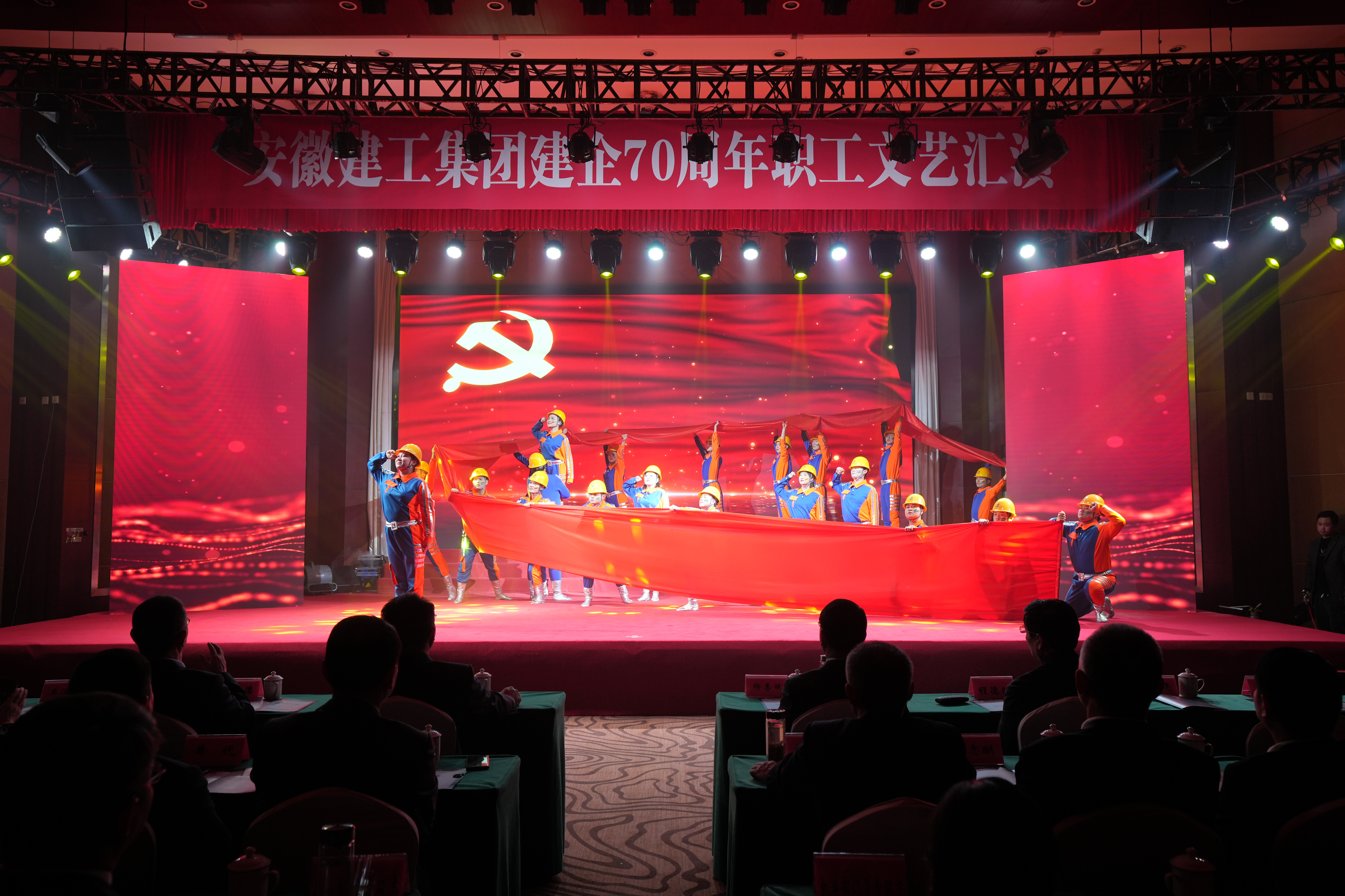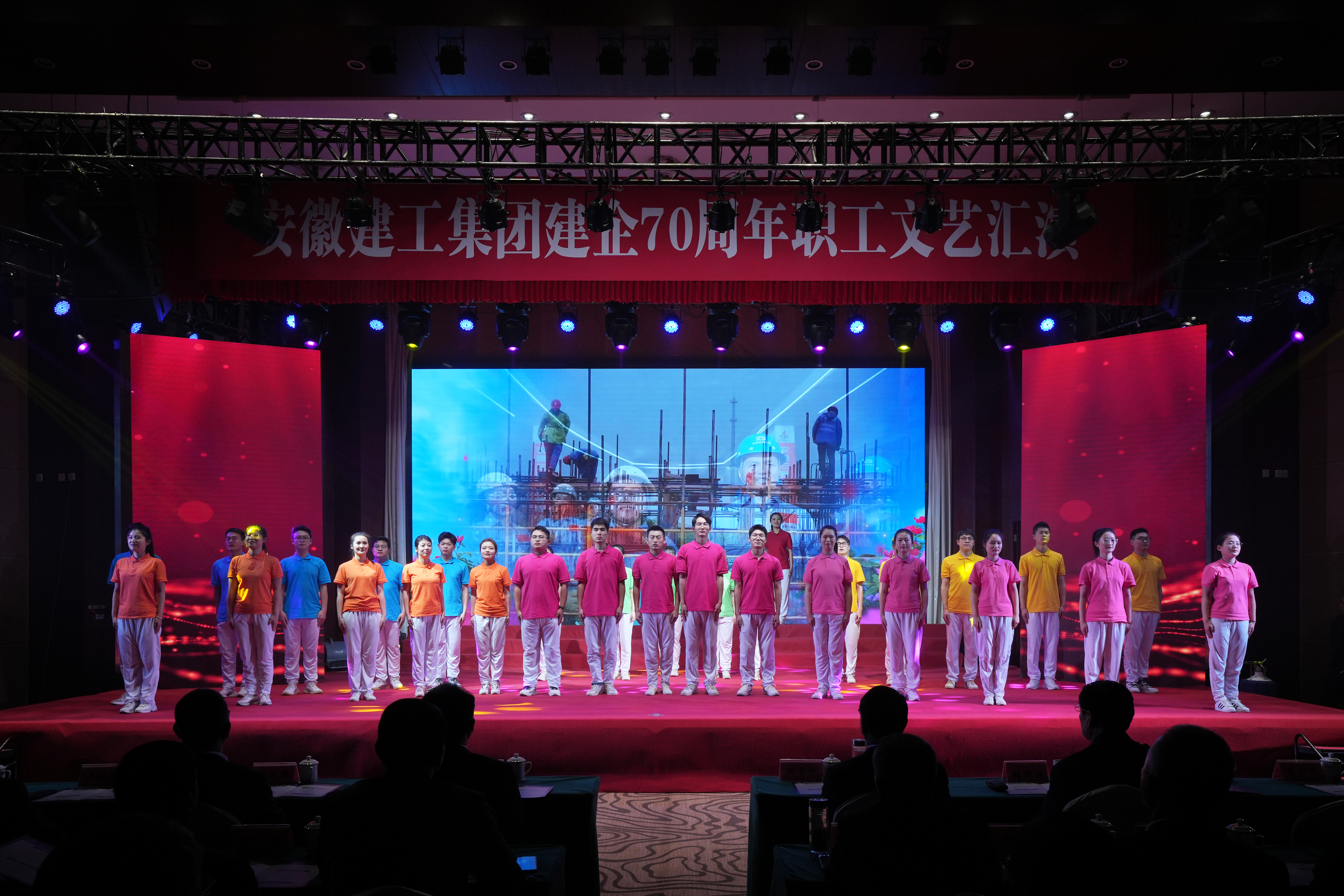 文藝匯演在集團(tuán)領(lǐng)導(dǎo)與演職人員和觀眾同唱《安徽建工之歌》歌聲中落下帷幕。