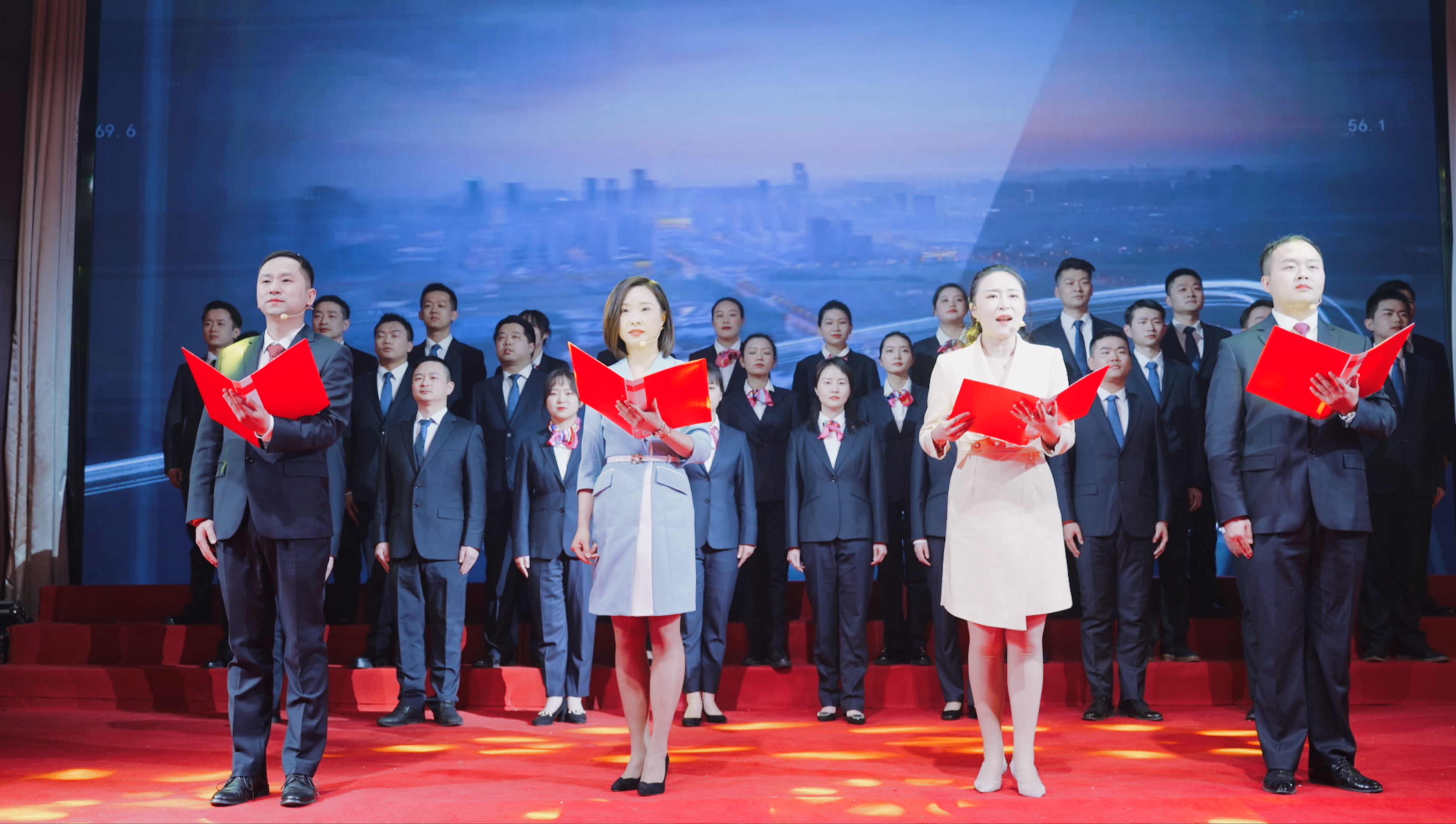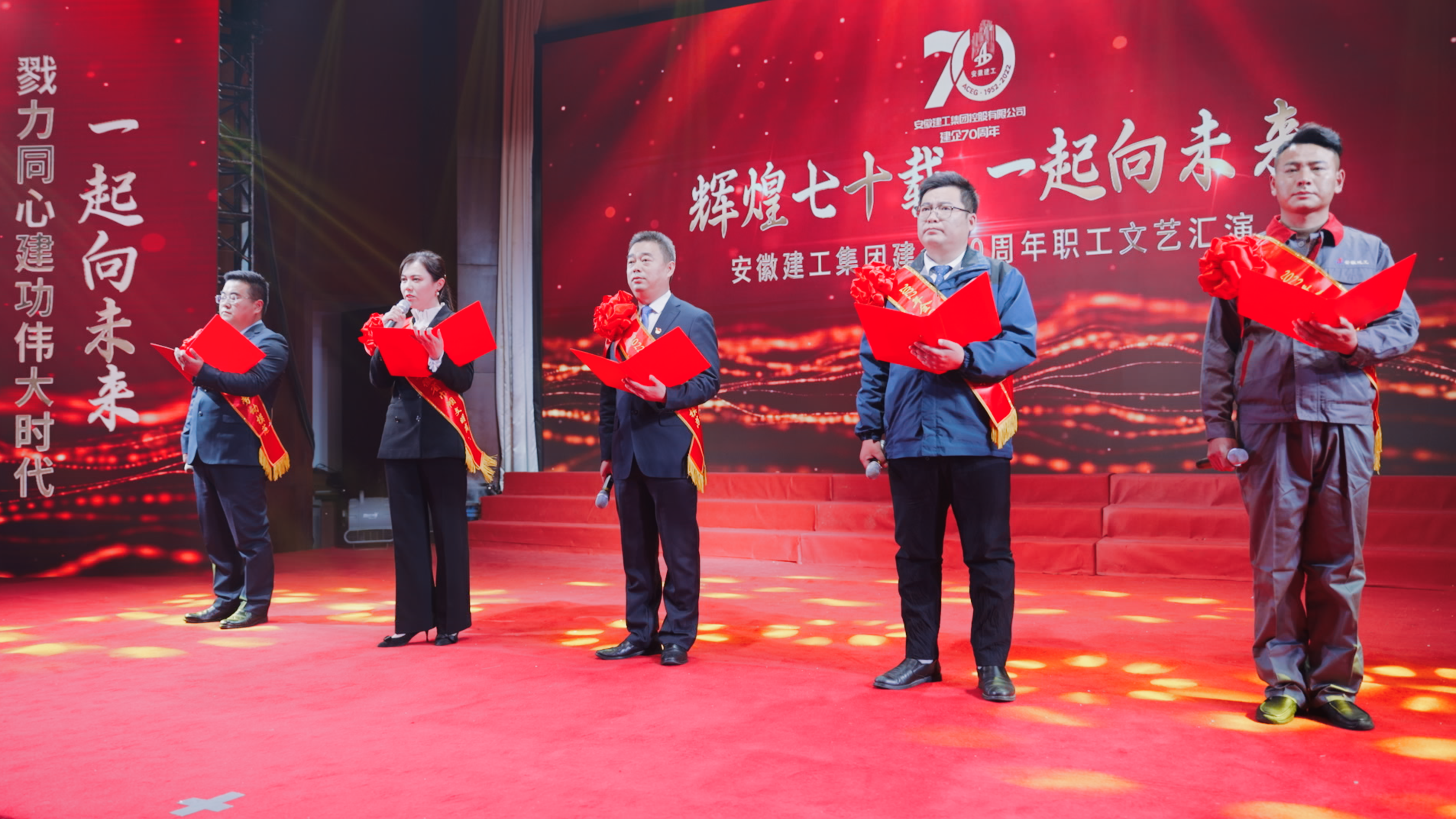 文藝匯演由“奮勇立潮頭”“禮贊建工人”和“揚(yáng)帆新征程”三個(gè)篇章組成,分別以主持人講述、宣傳片展示、全國(guó)和省級(jí)勞模先進(jìn)講述奮斗故事進(jìn)行開篇。來(lái)自19家基層單位和集團(tuán)機(jī)關(guān)500余名演職人員用一個(gè)個(gè)致敬過(guò)去、展望未來(lái)的精彩節(jié)目,通過(guò)情景合唱、群體朗誦、歌舞、音詩(shī)畫等形式,唱響慶祝集團(tuán)建企70年的主旋律,生動(dòng)展現(xiàn)了安徽建工集團(tuán)“匠心筑造七十載”的奮斗歷程和“初心奮進(jìn)新征程”的錚錚誓言。文藝匯演精彩紛呈,不時(shí)贏得全場(chǎng)觀眾的熱烈掌聲。
