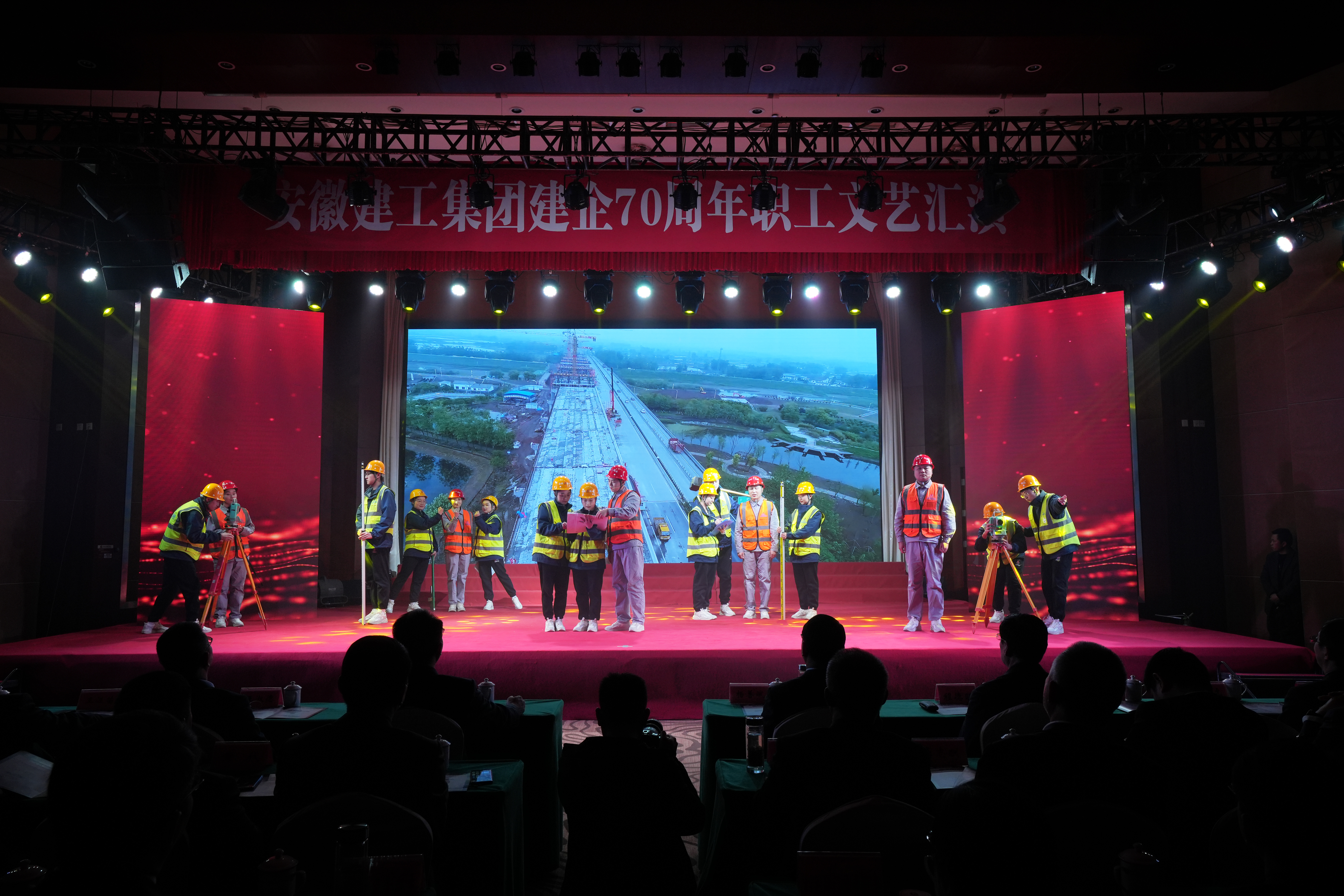 集團(tuán)領(lǐng)導(dǎo)、外部董事、省建設(shè)建材工會(huì)領(lǐng)導(dǎo)、職工代表、勞模先進(jìn)代表等逾400名觀眾現(xiàn)場(chǎng)觀看,2萬(wàn)余名職工通過(guò)網(wǎng)絡(luò)直播觀看了演出節(jié)目和集團(tuán)70周年宣傳片,見證了《安徽建工集團(tuán)70年大事記》發(fā)行。