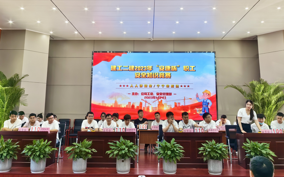 今年六月是第22個(gè)全國“安全生產(chǎn)月”,主題為“人人講安全,個(gè)個(gè)會(huì)應(yīng)急”。6月9日上午,公司工會(huì)牽頭,與安全管理部聯(lián)合舉辦了建工二建2023年“安康杯”職工安全生產(chǎn)知識(shí)競賽活動(dòng)。安全知識(shí)競賽的開展,旨在通過以賽促學(xué)、以學(xué)促用,大力弘揚(yáng)“生命至上、安全為天”的安全理念,加強(qiáng)安全知識(shí)宣傳教育,切實(shí)增強(qiáng)廣大職工安全生產(chǎn)意識(shí)和安全管理知識(shí)水平。公司黨委副書記、工會(huì)主席王軍,副總經(jīng)理代鵬飛出席活動(dòng)。