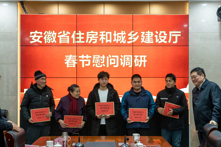 在新春佳節(jié)即將到來之際,1月28日下午,省住建廳黨組書記、廳長賀懋燮一行來到安徽建工集團(tuán)所屬安徽三建公司走訪慰問困難職工并召開座談會(huì),送來廳黨組的關(guān)心關(guān)懷。廳黨組成員、副廳長吳桂和,廳黨組成員、副廳長陳揚(yáng)年,廳黨組成員、總工方廷勇,建工控股黨委副書記、總經(jīng)理劉家靜,黨委委員、紀(jì)委書記、監(jiān)察專員王汪苗陪同慰問。