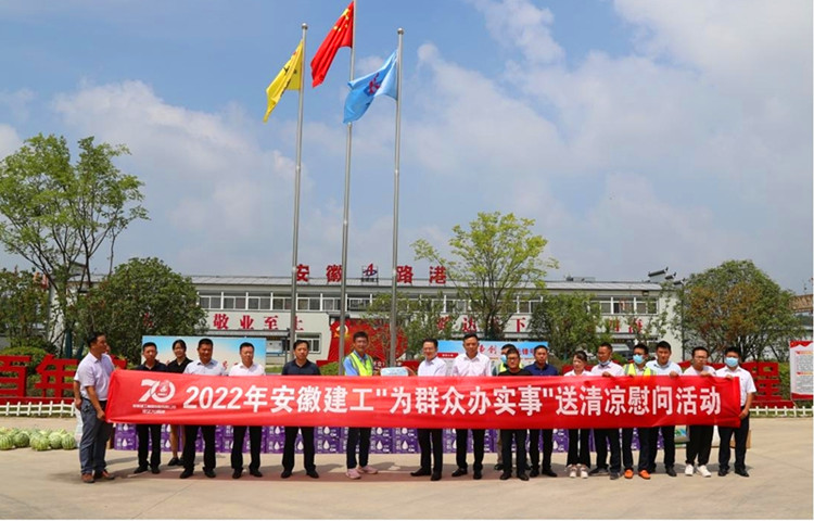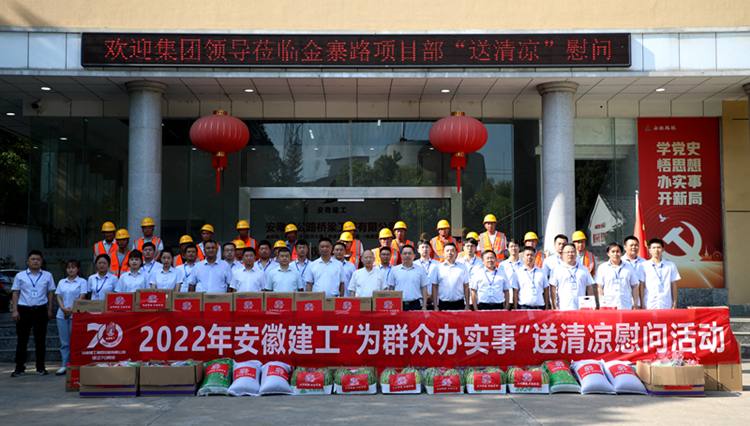 在安徽路橋金寨路項目,集團黨委書記、董事長趙時運將慰問品送到一線職工手中,并和大家親切交談,細致了解大家的生活工作情況,叮囑要注意勞逸結合,做好防暑降溫工作。慰問中,他要求,要深入貫徹落實習近平總書記關于安全生產(chǎn)的重要指示精神,嚴格落實高溫天氣作業(yè)時間要求,進一步壓實“五落實五到位”安全生產(chǎn)主體責任,加強對防暑降溫等工作的組織領導、措施落實,以安全高效工作成果迎接黨的二十大和建企70周年。