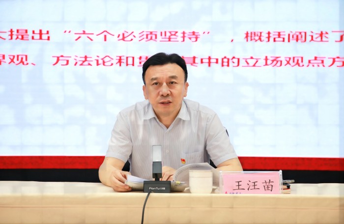 王汪苗在黨課報告中對開展主題教育主要脈絡(luò)和重點任務(wù)進行了梳理解讀。他指出,主題教育是黨中央在全黨和全國紀檢監(jiān)察系統(tǒng)貫徹落實黨的二十大精神,深入推進新時代黨的建設(shè)新的偉大工程的重大部署,也是當前集團紀檢系統(tǒng)的重大政治任務(wù)。集團紀檢系統(tǒng)要深刻體會習(xí)近平新時代中國特色社會主義思想的深刻內(nèi)涵,切實增強做到“兩個維護”的政治自覺。要深刻領(lǐng)悟習(xí)近平總書記關(guān)于紀檢監(jiān)察干部隊伍建設(shè)的重要論述,切實增強打鐵必須自身硬的思想自覺。要深刻領(lǐng)悟習(xí)近平總書記關(guān)于紀檢監(jiān)察工作的重要論述,切實增強堅定推動集團紀檢監(jiān)察工作高質(zhì)量發(fā)展的行動自覺。