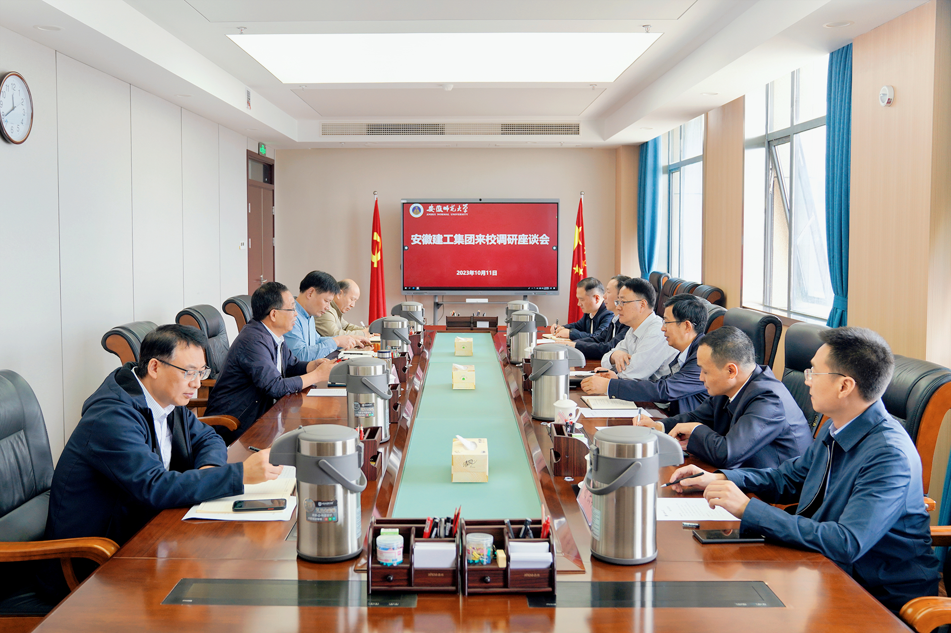 ▲與安徽師范大學黨委書記胡朝榮座談