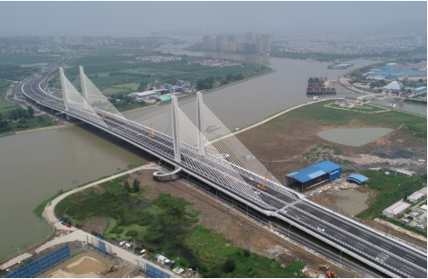 巢湖亞父路位于合肥市合巢經(jīng)開區(qū),全長約4.65公里,其中裕溪河特大橋全橋長974米,為雙塔雙索面預(yù)應(yīng)力混凝土斜拉橋,橋面寬44.5米,為目前國內(nèi)采用前支點(diǎn)牽索掛籃工藝施工的最寬橋梁。