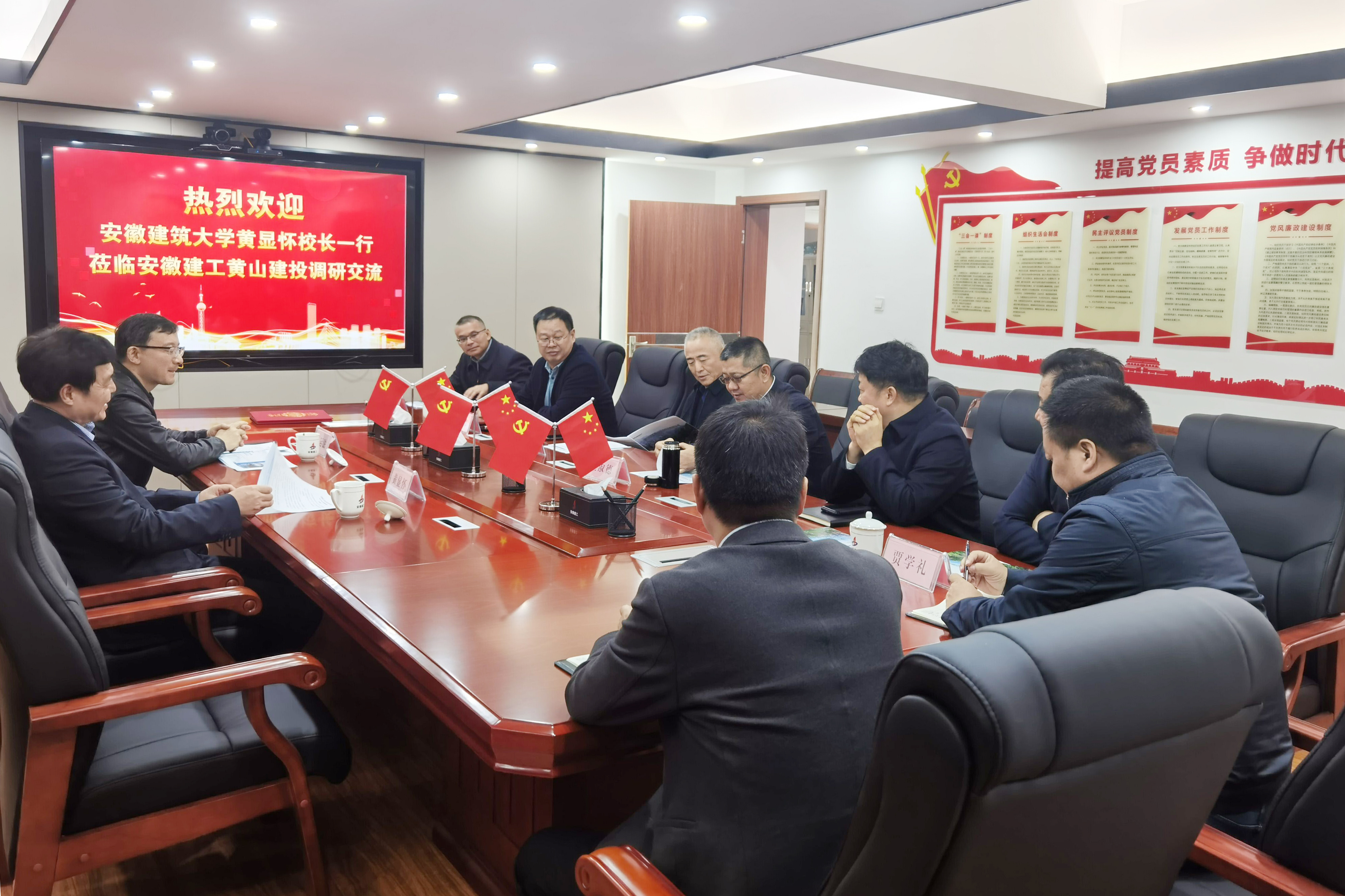 11月15日,安徽建筑大學黨委副書記、校長黃顯懷一行到安徽建工黃山建投調研座談,建工控股黨委委員、總會計師王淑德出席座談會。