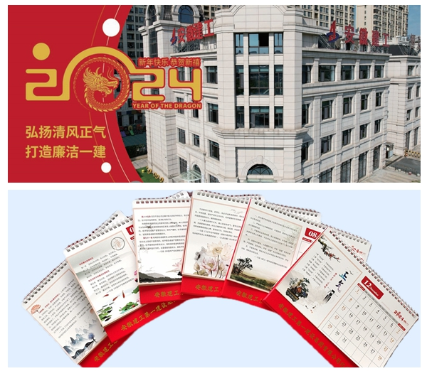 嚴把廉潔關(guān)、作風關(guān),不斷探索創(chuàng)新廉潔文化方式載體,讓廉潔教育“藥效”更強,更有滲透力,不斷拓展廉潔教育的深度和廣度。印制一份廉政教育臺歷,以“弘揚清風正氣 打造廉潔一建”為主題,緊扣廉潔自律內(nèi)容,選取習近平總書記的重要講話和論述,節(jié)選《廉政賬房制度》《項目經(jīng)理廉潔從業(yè)提示函》等公司廉潔從業(yè)重點制度文件,編制每月一條“廉潔警句”,將廉政臺歷發(fā)放給中層及以上領(lǐng)導(dǎo)干部、項目部班子及關(guān)鍵崗位人員,在潛移默化中把規(guī)章制度內(nèi)化于心,著力打造獨具一格的“桌面”廉潔文化。定制一面“風紀鏡”,放置于安慶總部一樓大廳,不僅是督促干部職工規(guī)范自身的衣著、儀態(tài)和精神面貌,更是要求大家要對照自身,每日自省己心,做到“正衣冠、知敬畏、守底線”。
