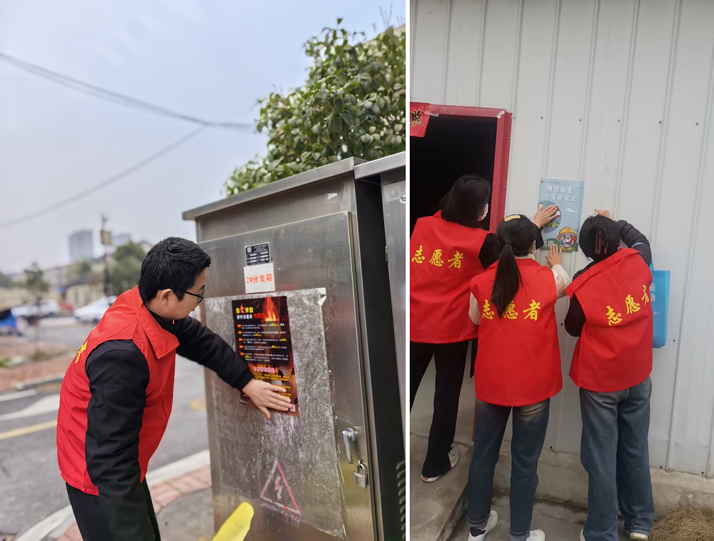 隨后分組對(duì)周邊小區(qū)內(nèi)存在的安全隱患進(jìn)行排查,特別是針對(duì)電瓶車飛線充電等違規(guī)行為進(jìn)行整治。志愿者們通過(guò)向周邊居民宣傳安全用電知識(shí),在街面和出入口顯眼位置張貼《關(guān)于禁止在公共區(qū)域亂拉電線充電的溫馨提示》等方式提醒居民注意用電安全,杜絕違規(guī)行為的發(fā)生。