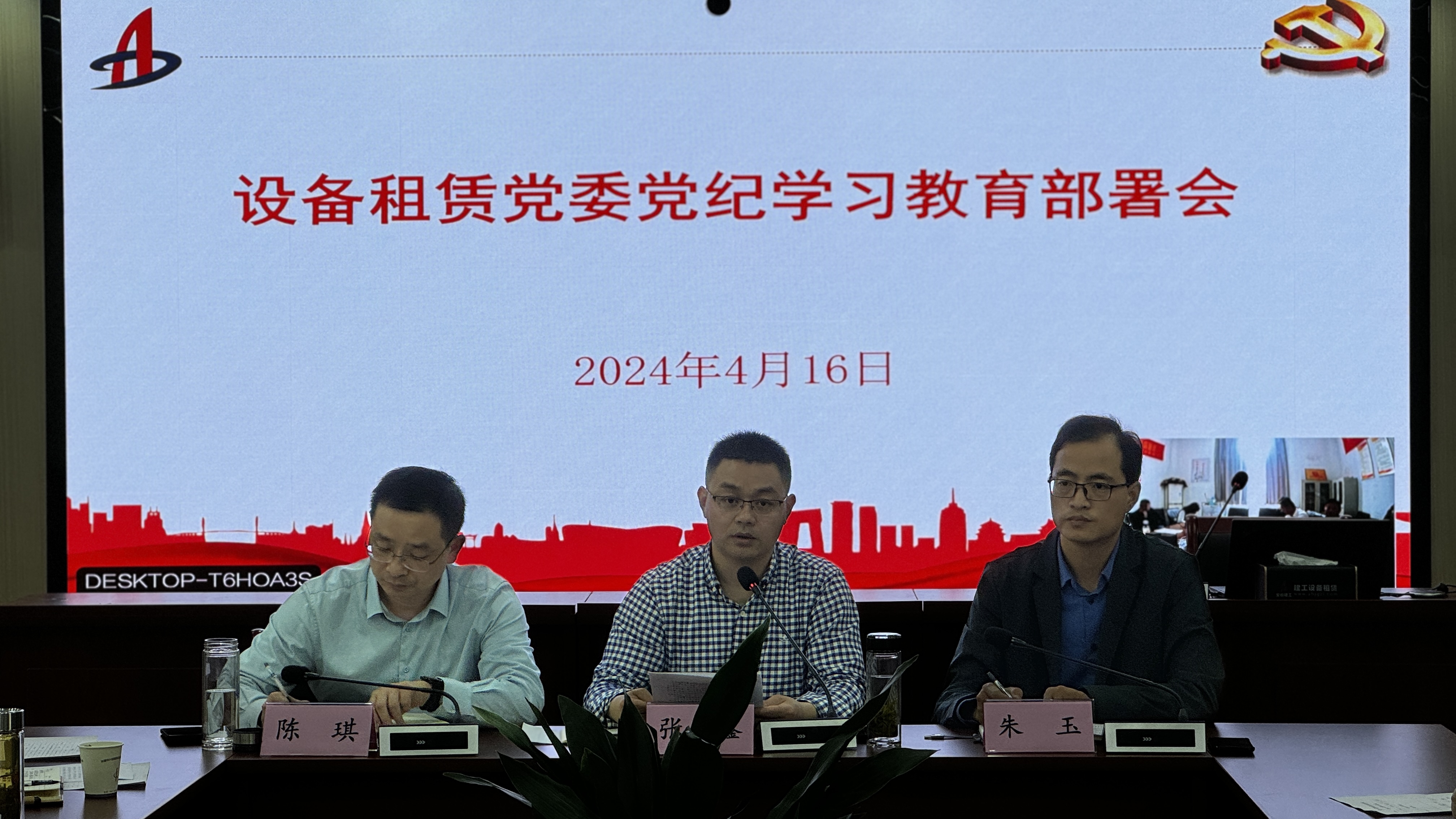 4月16日,建工設(shè)備租賃黨委召開黨紀學(xué)習(xí)教育部署會,公司黨委副書記、副總經(jīng)理張鑫主持會議,黨委委員朱玉、陳琪,各黨支部負責人、黨務(wù)工作者參加會議。