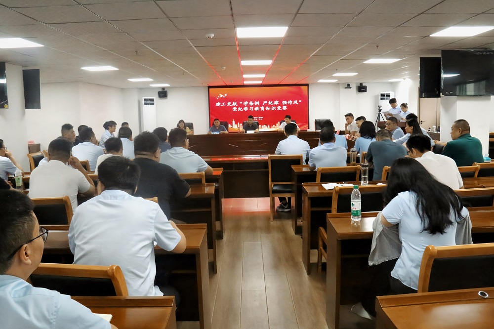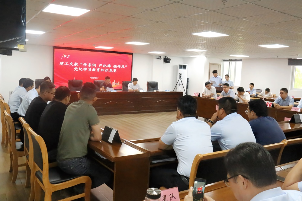 為深入推進(jìn)黨紀(jì)學(xué)習(xí)教育主題活動(dòng),教育引導(dǎo)黨員干部做到學(xué)紀(jì)、知紀(jì)、明紀(jì)、守紀(jì),以競賽形式檢驗(yàn)學(xué)習(xí)成果,6月19日,建工交航開展“學(xué)條例 嚴(yán)紀(jì)律 強(qiáng)作風(fēng)”黨紀(jì)學(xué)習(xí)教育知識競賽。公司黨委副書記、總經(jīng)理李登祥出席活動(dòng),黨委委員、副總經(jīng)理、工會主席王黎明致辭。公司機(jī)關(guān)黨總支書記、財(cái)務(wù)資產(chǎn)部部長李愛平、紀(jì)檢室負(fù)責(zé)人李衍、團(tuán)委書記李鳳祥及各代表隊(duì)領(lǐng)隊(duì)、隊(duì)員共計(jì)50余人參與此次活動(dòng)。